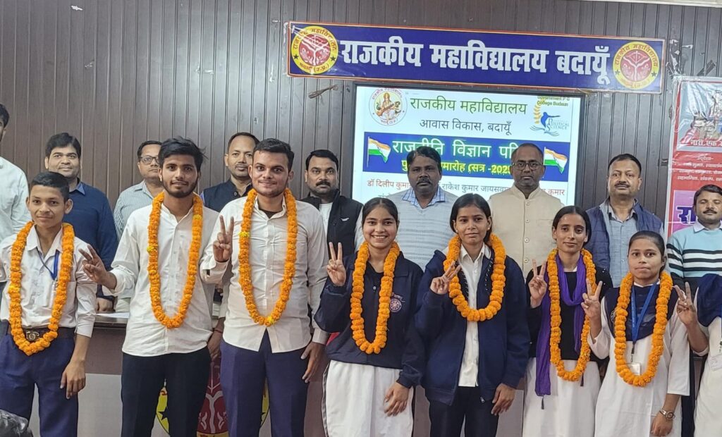 बदायूं। आवास विकास स्थित राजकीय महाविद्यालय में वर्तमान सत्र 2025 – 26 हेतु राजनीति विज्ञान परिषद की कार्यकारिणी गठित की गई। जिसमे एमए प्रथम सेमेस्टर की शगुन शर्मा को अध्यक्ष निर्वाचित घोषित किया गया। जबकि सचिव पद पर एमए प्रथम सेमेस्टर के ही छात्र निखिल सिंह चौहान निर्वाचित हुए। लोकतांत्रिक तरीके से पुनर्गठित राजनीति विज्ञान परिषद का चुनाव विभागाध्यक्ष डॉ राकेश कुमार जायसवाल एवं निर्वाचन अधिकारी डॉ हुकुम सिंह की देखरेख में संपन्न हुआ। अध्यक्ष पद पर शगुन शर्मा ने अपने निकटतम प्रतियोगी से 25 मत अधिक प्राप्त कर जीत हासिल किया। उपाध्यक्ष के दो पद पर महिमा भारती एवं सुमित यादव चुने गए। सचिव के एकल पद पर निखिल सिंह चौहान ने 26 मत से जीत हासिल कर निर्वाचित हुए। संयुक्त सचिव के दो पदों पर वन्दना केशरी और ललिक राम निर्वाचित हुए। कार्यकारिणी सदस्य के रूप में रोहित शर्मा, निशा चौहान, मोहन लाल एवं निहाशा का चुनाव किया गया। सभी प्रत्याशियों ने नामांकन के बाद अर्हता भाषण दिया जिसमें उन्होंने प्राचार्य एवं मतदाता छात्र छात्राओं के सवालों का जवाब भी दिया। विजेता पदाधिकारियों को राजनीति विज्ञान परिषद के संयोजक डॉ दिलीप कुमार कुमार वर्मा ने माल्यार्पण कर अभिनंदन किया तथा सभी के प्रति आभार ज्ञापित किया।