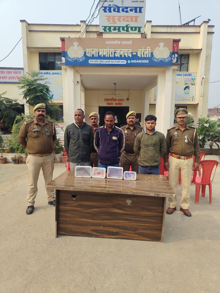 बरेली। थाना भमोरा पुलिस ने अवैध शस्त्रों के साथ तीन अभियुक्तों को गिरफ्तार कर चोरी की कई घटनाओं का खुलासा किया है। देवचरा–बल्लिया रोड स्थित नहर की पुलिया के पास देर रात चेकिंग के दौरान पकड़े गए इन तीनों के कब्जे से दो तमंचे 315 बोर, दो जिंदा कारतूस, एक नाजायज चाकू, एक कार तथा 2540 रुपये बरामद किए गए। उप निरीक्षक ब्रहमप्रकाश गौतम के नेतृत्व में पुलिस टीम संदिग्ध व्यक्तियों व वाहनों की जांच कर रही थी। इसी दौरान मुखबिर की सूचना पर पकड़े गए आरोपितों की पहचान कलमा हुसैन , सद्दाम और दिलकश के रूप में हुई। तलाशी में तीनों के पास से अवैध असलहे मिले, जबकि 2540 रुपये एक पूर्व पंजीकृत चोरी के मुकदमे से संबंधित पाए गए। पूछताछ में तीनों ने संगठित रूप से चोरी करने की बात स्वीकार की और बताया चार महीने पहले ग्राम देवचरा में मोबाइल की दुकान की दीवार काटकर 36,500 रुपये की चोरी। साढ़े तीन महीने पहले प्राथमिक विद्यालय मिलक मन्सारामपुर की रसोई का ताला तोड़कर बर्तन, सिलेंडर व चूल्हा चोरी कर 12,000 रुपये में बेचना बताया। तीन महीने पहले ग्राम देवचरा के एक मकान से सोने-चांदी के जेवरात चोरी कर 39,000 रुपये में बेचना बताया । तीनों ने चोरी की रकम बराबर बांटने की बात भी स्वीकार की। कलमा हुसैन पर शाहजहाँपुर और बरेली में गैंगस्टर एक्ट, बीएनएस व आर्म्स एक्ट समेत पाँच मुकदमे दर्ज हैं। सद्दाम पर अवैध असलहे के दो मुकदमे दर्ज हैं। दिलकश पर एक मुकदमा पहले से दर्ज है। पुलिस टीम में थानाध्यक्ष सनी चौधरी, उप निरीक्षक ब्रहमप्रकाश गौतम, ब्रहमपाल सिंह, श्याम सिंह, हेड कांस्टेबल अजयपाल सिंह, कॉन्स्टेबल उन्नत पंवार, राहुल कुमार और प्रशांत चौधरी शामिल रहे।