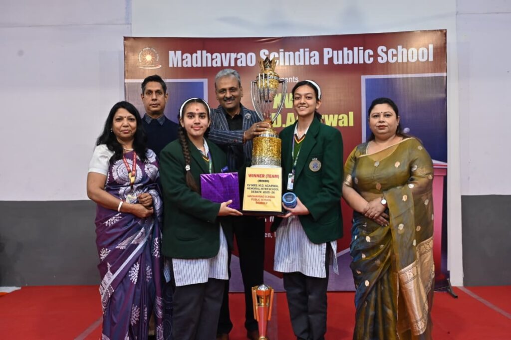 बरेली। माधवराव सिंधिया पब्लिक स्कूल मे पंद्रहवी श्रीमती एम डी अग्रवाल मैमोरियल वाद-विवाद प्रतियोगिता का आयोजन किया गया। प्रतियोगिता हिन्दी तथा अंग्रेजी दोनों भाषाओं में थी। हिन्दी भाषा का विषय था “हिंदी को राष्ट्र भाषा घोषित कर देना चाहिए” तथा अंग्रेजी भाषा में विषय था- “Euthanasia should be legalized worldwide”