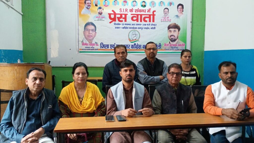 बरेली। रामपुर गार्डन स्थित जिला एवं महानगर कांग्रेस कमेटी कार्यालय में आयोजित प्रेस वार्ता में जिला कांग्रेस कमेटी के अध्यक्ष मिर्जा अशफाक सकलैनी और यूपी कांग्रेस कमेटी के प्रदेश प्रवक्ता तथा पूर्व महापौर प्रत्याशी गुरुजी डॉ. के. बी. त्रिपाठी ने चुनाव आयोग द्वारा कराए जा रहे विशेष प्रगाढ़ पुनरीक्षण (SIR) को लेकर गंभीर सवाल उठाए। दोनों नेताओं ने कहा कि एसआईआर फॉर्म भरने में मतदाताओं को भारी कठिनाइयों का सामना कराना पड़ रहा है, जबकि अंतिम तिथि 4 दिसंबर बेहद कम है। कांग्रेस ने मांग की कि समय सीमा बढ़ाई जाए ताकि कोई भी मतदाता प्रक्रिया से बाहर न रह जाए।
