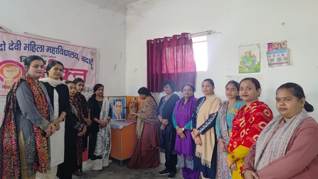 बदायूँ। गिंदो देवी महिला महाविद्यालय में नेशनल सर्विस स्कीम के तहत प्राचार्या प्रो. सरला चक्रवर्ती के निर्देशन में “संविधान दिवस” के अवसर पर शपथ ग्रहण समारोह का आयोजन किया गया। प्रोग्राम की शुरुआत प्रिंसिपल प्रो. सरला चक्रवर्ती ने माँ सरस्वती के समक्ष द्वीप प्रज्वलित करके की। उन्होंने स्टूडेंट्स को बताया कि “26 नवंबर” को हर साल हम संविधान दिवस के रूप में मनाते है। आज के दिन ही 1949 में कॉन्स्टिट्यूएंट असेंबली ने भारतीय संविधान को अपनाया था। संविधान की ड्राफ्टिंग में काफी लंबा समय लगा जो 9 दिसंबर 1946 से 26 नवंबर 1949 तक 2 साल, 11 महीने और 18 दिन तक चला। यह दिन डॉ. बी.आर. अंबेडकर और ड्राफ्टिंग समिति के दूसरे सदस्यों के विज़न और प्रतिबद्धता को दिखाता है, जिन्होंने भारत की डेमोक्रेटिक नींव को आकार दिया। यह कॉन्स्टिट्यूशनल वैल्यू, अधिकारों, ड्यूटी और डेमोक्रेटिक प्रिंसिपल्स की सुरक्षा के महत्व के बारे में जागरूकता भी बढ़ाता है। एनएसएस कार्यक्रम अधिकारी डॉ प्रीति वर्मा ने संविधान प्रस्तावना के महत्व पर चर्चा की और एनएसएस कार्यक्रम अधिकारी अवनीशा वर्मा ने महिला नेताओं की भूमिका और भारत के संविधान को बनाने में उनके योगदान पर चर्चा की। कार्यक्रम में छात्राओं ने सक्रिय रूप से भाग लिया और कॉलेज की सभी शिक्षिकाएं कार्यक्रम में उपस्थित रहीं।अंत में सभी शिक्षिकाओं और छात्राओं ने प्रतिज्ञा ली।