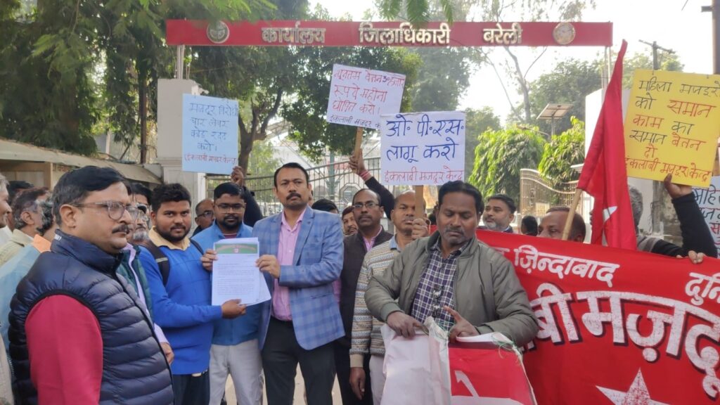 बरेली। देशव्यापी प्रतिरोध दिवस के तहत बरेली ट्रेड यूनियंस फेडरेशन के पदाधिकारी जिलाधिकारी कार्यालय पहुँचे और राष्ट्रपति को संबोधित ज्ञापन सिटी मजिस्ट्रेट को सौंपा। ज्ञापन में चारों नये लेबर कोड्स को मजदूर-विरोधी बताते हुए वापस लेने की मांग की गई। महामंत्री संजीव मेहरोत्रा और अंचल अहेरी ने कहा कि 29 श्रम कानूनों को मिलाकर बने इन कोड्स का उद्देश्य “Hire and Fire” को बढ़ावा देना है, जिससे मजदूरों की नौकरी और अधिकार असुरक्षित हो जाएंगे। उन्होंने कहा कि हड़ताल पर कड़ी पाबंदियाँ लगने से शांतिपूर्ण विरोध भी दंडनीय हो सकता है। कार्यकारी अध्यक्ष डॉ. अंचल अहेरी के अनुसार नए प्रावधान ठेका प्रथा को वैधता देते हैं, क्योंकि कंपनियाँ अल्पकालिक अनुबंध पर मजदूर रखकर मनमाने ढंग से हटा सकेंगी। इंकलाबी मजदूर केंद्र के हरगोविंद ने कहा कि नये कोड अभिव्यक्ति, यूनियन बनाने और हड़ताल के अधिकारों को कमजोर करते हैं तथा लेबर कोर्ट समाप्त होने से न्याय और कठिन हो जाएगा। उपाध्यक्ष जितेंद्र मिश्रा ने ठेका मजदूरों की बढ़ती संख्या को चिंताजनक बताया, वहीं मोहम्मद फैसल ने कहा कि छंटनी की अनुमति सीमा 300 करने से 93% मजदूर संरक्षण से बाहर हो जाएंगे। अन्य वक्ताओं ने असंगठित मजदूरों के भविष्य को अंधकारमय बताते हुए मुख्य नियोक्ता की जवाबदेही खत्म होने पर चिंता जताई। क्रांतिकारी किसान मंच के हिमांशु ने कहा कि हम इन नए लेबर कोड का विरोध करते हैं और इनके खिलाफ चल रहे मजदूरों के आंदोलनों का समर्थन करते हैं। मजदूरों और किसानों की समस्याओं को हल करने के लिए हमें किसान – मजदूरों की व्यापक व मजबूत एकता की जरूरत है। कार्यक्रम में कई संगठन प्रतिनिधि उपस्थित रहे। ज्ञापन के दौरान अरविंद शुक्ला, रामसेवक, पप्पू, अंकित, विमल, संजय, निशा, कैलाश, के पी सिंह सतेंद्र, भारत सिंह, एडवोकेट यशपाल, एडवोकेट टी डी भास्कर, सतीश कुमार सिंह, लाल जी कुशवाहा, बालकराम, सौरभ कुमार, उमेश, रमजान अली, ईश्वर चंद आदि शामिल रहे।