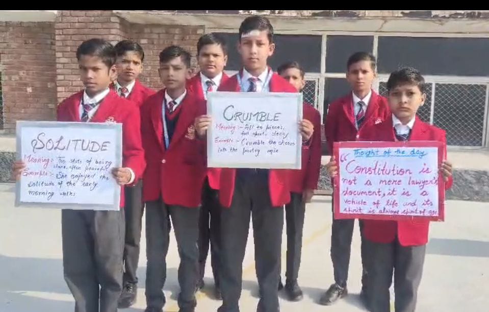 विशेष प्रार्थना सभा से प्रारम्भ हुए कार्यक्रम में प्रधानाचार्य अनुपम प्रकाश वैश्य ने कहा भारतीय संविधान दुनिया में सबसे बड़ा संविधान है | देश की एकता अखंडता और समरसता का आधार भारतीय संविधान है | देश के हर नागरिक को देश में रहकर अपना हर कार्य संविधान की गरिमा के अनुरूप करना चाहिए | इस मौके पर सामाजिक विज्ञान के प्रवक्ता मोहम्मद समीर ने भी अपनी विचार रखे | प्रश्नोत्तरी में छात्र/छात्राओं से संविधान से जुड़े सवाल भी पूछे गए जिसका बच्चों ने उत्साहपूर्वक उत्तर दिया | विद्यार्थिओं द्वारा बनाये गए स्लोगन पोस्टर आकर्षण का केंद्र रहे | राष्ट्रगान के साथ कार्यक्रम का समापन हुआ