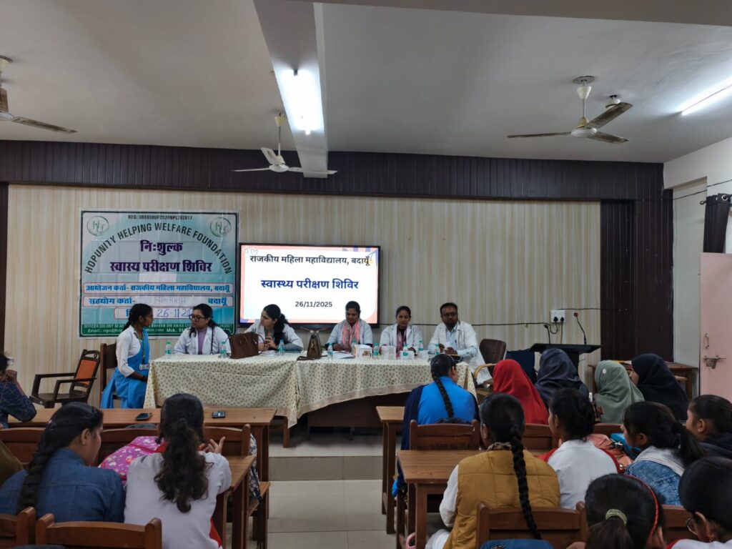 बदायूं। आज 76वें संविधान दिवस के उपलक्ष्य में होपयूनिटी हेल्पिंग वेलफेयर फाउंडेशन द्वारा राजकीय महिला महाविद्यालय में एक निशुल्क स्वास्थ्य शिविर का सफलतापूर्वक आयोजन किया गया। कार्यक्रम का शुभारंभ महाविद्यालय की प्राचार्या डॉ वंदना द्वारा माँ सरस्वती के समक्ष पुष्प अर्पित कर एवं दीप प्रज्वलित करके किया गया।
