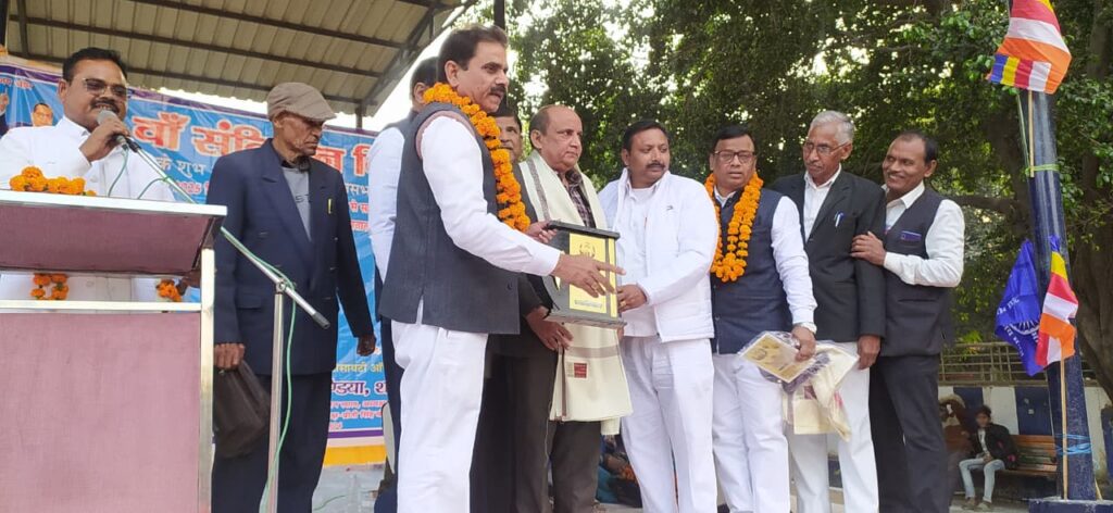 बदायूँ। बिगत वर्षों की भांति इस बार भी दि बुद्धिष्ट सोसायटी आफ इंडिया शाखा के तत्वावधान में 76वां संबिधान दिवस डॉ भीम राव अम्बेडकर पार्क निकट जिला अस्पताल बदायूं में सुबह 11बजे से सायं 4बजे तक मनाया गया जिसमें मुख्य अतिथि के रूप में श्रद्धेय राम सेवक गौतम प्रदेश अध्यक्ष दि बुद्धिष्ट सोसायटी आफ इंडिया उपस्थित रहे तथा विशिष्ट अतिथि आदरणीया सबिता अम्बेडकर, राष्ट्रीय कार्यकारिणी सदस्य, श्रद्धेय इं 0 राधेश्याम बौद्ध मंडल अध्यक्ष उपस्थित हुए मुख्य वक्ता गण श्रद्धेय आर पी त्यागी एड जिला अध्यक्ष बहुजन समाज पार्टी, श्रद्धेय जयपाल सिंह मुख्य मंडल प्रभारी बहुजन समाज पार्टी, डॉ क्रांति कुमार महा उपासक, हेमेंद्र गौतम जिला प्रभारी बहुजन समाज पार्टी, रछपाल निमेष पूर्व जिला अध्यक्ष बहुजन समाज पार्टी,कु अभिलाषा यादव गोल्ड मेडलिस्ट राजनीति शास्त्र आदि ने अपने बिचार व्यक्त किए मुख्य अतिथि श्रद्धेय राम सेवक गौतम ने अपने बिचार व्यक्त करते हुए कहा कि बाबा साहेब डॉ भीम राव अम्बेडकर ने संसार के सबसे विशालतम भारतीय संविधान की रचना करके देश के विभिन्न वर्ग समुदायों को एक जुट करने का कार्य कर महानतम देश भक्ति का प्रमाण दिया। कार्यक्रम की अध्यक्षता श्रद्धेय ब्रह्मा नंद बौद्ध ने की व संचालन भारत सिंह अम्बेडकर ने किया। कार्यक्रम में भीमसेन सागर,राम सरन लाल,मान सिंह गौतम,लोकमन सिंह, राजीव कुमार,सुधा बौद्ध,सदावती बौद्ध पुष्पा गौतम, विनोद कुमारी,हरी शंकर, सोनपाल, दिग्विजय सिंह एड श्याम कुमार दिबाकर एड, प्रेम पाल एड मंजू बौद्ध, अनीता बौद्ध मधु बाला बौद्ध, प्रीति रानी बौद्ध राम चंद्र सिंह, ज्ञान चंद आर्य, छोटे लाल बौद्ध आदि मौजूद रहे