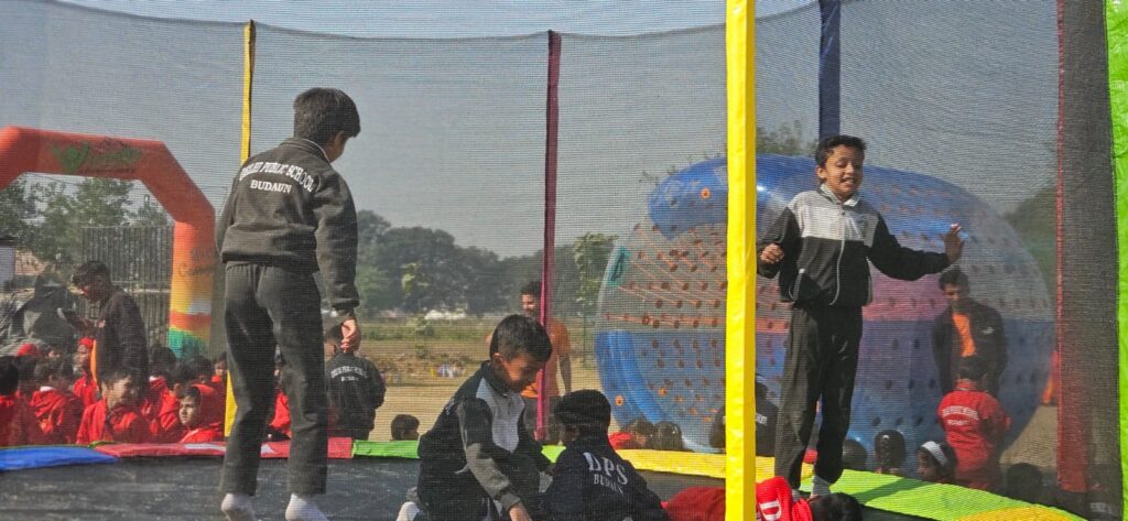 बदायूँ। दिल्ली पब्लिक स्कूल में आज प्री-नर्सरी से कक्षा 2 तक के नन्हे विद्यार्थियों के लिए वार्षिक एडवेंचर कैंप सफलता पूर्वक आयोजित किया गया। सुबह से ही विद्यालय परिसर बच्चों की ऊर्जा, हँसी और रोमांच से गूँज उठा। प्रशिक्षित विशेषज्ञों की देखरेख में टायर रन, बर्मा ब्रिज, बैलेंस बीम, ट्रैम्पोलिन, हॉप स्कॉच, नेट क्लाइम्बिंग, टनल पासिंग जैसी गतिविधियों ने बच्चों को सीख और आनंद का अनोखा अनुभव दिया।