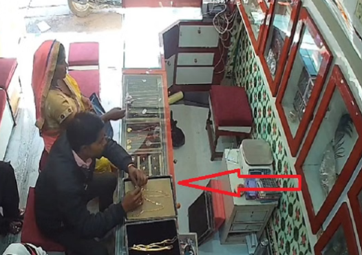 बदायूं सराफा बाजार में ग्राहक बनकर आया युवक तीन सोने की चेन लेकर फरार, सीसीटीवी में कैद हुई वारदात