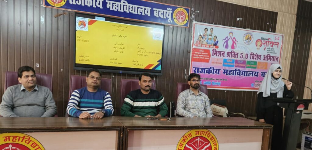 बदायूँ। आवास विकास स्थित राजकीय महाविद्यालय में नवगठित उर्दू साहित्य परिषद के द्वारा मालूमाते-ए-आम्मा, तक़रीरी मुकाबला एवं गज़ल सराई प्रतियोगिता आयोजित की गई। गज़ल सराई में दरख़्शा ने प्रथम स्थान प्राप्त किया। दूसरे स्थान पर फरजाना रहीं तथा तीसरा स्थान नीलोफर को मिला।