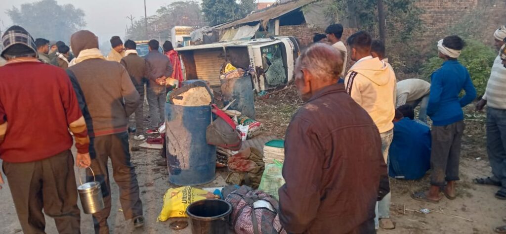 दिल्ली-बदांयू हाइवे पर रोड़वेज बस की टक्कर से मैजिक वाहन पलटा, महिला सहित पांच यात्री घायल