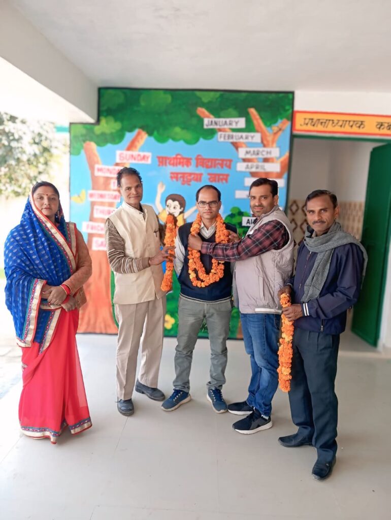 भाजपा नेता और ग्राम प्रधान ने बीएलओ को किया सम्मानित।