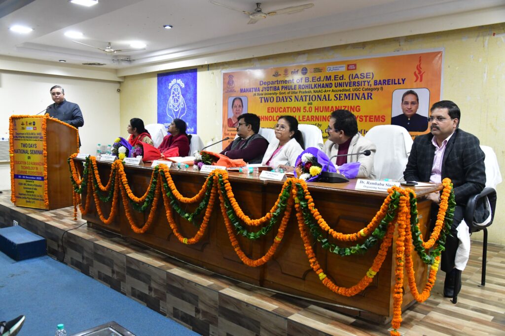 बरेली । दो दिवसीय राष्ट्रीय संगोष्ठी के दूसरे दिन अलग अलग टेक्निकल सेशन में शोधार्थियों ने ऑन शोध पत्र प्रस्तुत किए तथा समापन सत्र का आयोजन शिक्षा विभाग के सभागार में हुआ जिसमें सेमिनार संयोजक डॉ मीनाक्षी द्विवेदी ने सेमिनार की रिपोर्ट पढ़ते हुए बताया कि संगोष्ठी में देशभर के विविध संथानाओ का प्रतिनिधित्व रहा ,ऑग्युमेंटेड रियलिटी, वर्चुअल रियलिटी एवं अन्य विषयों पर 170 से अधिक अधिक शोध पत्र प्रस्तुत किए गए, संगोष्ठी में हुई गहन चर्चा में सभी प्रतिभागियों ने एजुकेशन 5.0 की अवधारणा को समझा और पाया कि भविष्य की शिक्षा में तकनीक तो आए परंतु मानवीय मूल्य हमेशा प्राथमिक रहें। एआई रहेगी परंतु शिक्षक की भूमिका कभी समाप्त नहीं होगी। चर्चा से यह पता लगा की डिजिटल पैरामीटर तय किया जाये, इसमें इंक्लूसिव एजुकेशन के टूल्स अधिक उपयोगी होंगे साथ ही मशीन लर्निंग तो हो परंतु मानव का विकल्प मशीन नहीं हो सकती साथ ही सेमिनार में बहुत से उपयोगी विचार भी आए जो शोधार्थियों के लिए उपयोगी सिद्ध होंगे। विशेष वक्ता प्रो तूलिका सक्सेना ने कहा कि हम सभी को तकनीक के समय में मानवीय गुणों का ध्यान रखने की आवश्यकता है । संस्थानों को एक ऐसा लर्निंग इकोसिस्टम बनाने कि आवश्यकता है जहां नवाचार हो साथ ही संवेदना भी हो अच्छा इंफ्रास्ट्रक्चर हो साथ ही नैतिक जिम्मेदारी का एहसास भी हो । EQ, IQ तथा DQ इन तीनों का सामंजस्य होना चाहिए । तकनीक एक टूल है लेकिन मानवीयता हमारा लक्ष्य है ।