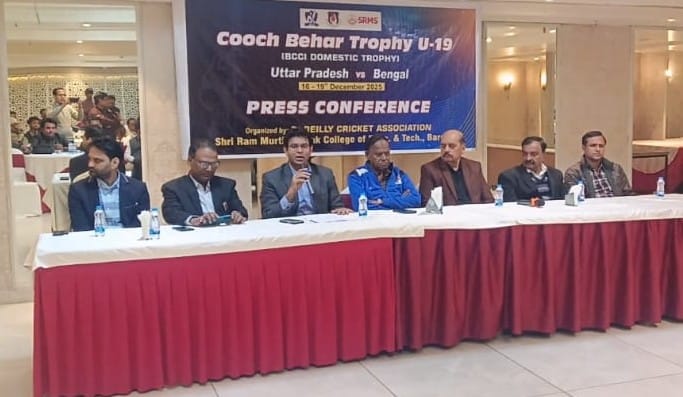 बरेली। बीसीसीआई के घरेलू क्रिकेट कैलेंडर के अंतर्गत कूच बेहार ट्रॉफी अंडर-19 का तीसरा मैच बरेली में आयोजित किया जा रहा है। 16 से 19 दिसंबर तक श्रीराम मूर्ति स्मारक कॉलेज ऑफ इंजीनियरिंग एंड टेक्नोलॉजी स्थित श्रीराम मूर्ति स्मारक क्रिकेट स्टेडियम में उत्तर प्रदेश और बंगाल की टीम आमने-सामने होंगी। मैच को लेकर तैयारियां युद्धस्तर पर जारी हैं। इसी संबंध में सोमवार को बरेली क्रिकेट एसोसिएशन (बीसीए) ने प्रेस वार्ता आयोजित की।