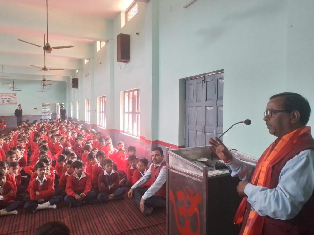 अवकाश के पश्चात आचार्य परिवार एवं पूर्व छात्र परिषद के व्यवसायी छात्रों के साथ बैठक कर विद्या भारती योजना का उद्देश्य बताया.