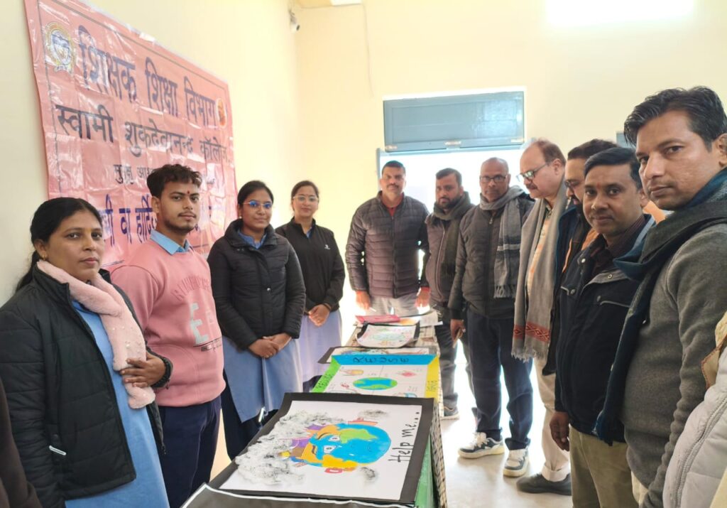 शाहजहांपुर। नगर के प्रतिष्ठित देवी प्रसाद इंटर कॉलेज के प्रांगण में आज स्वामी शुकदेवानंद कॉलेज के डॉ० राजीव यादव के नेतृत्व में बी०एड० प्रशिक्षुओं द्वारा पर्यावरण जागरूकता प्रदर्शनी का आयोजन किया गया। कार्यक्रम का उद्देश्य विद्यार्थियों और युवाओं को पर्यावरण संरक्षण के महत्त्व से अवगत करना तथा उन्हें प्रकृति के प्रति जिम्मेदार बनने के लिए प्रेरित करना था। देवी प्रसाद इन्टर कॉलेज के प्रधानाचार्य श्री अवधेश सिंह अरुण ने संबोधित किया कि चार्ट या पोस्टर के माध्यम से पर्यावरणीय जागरूकता के उद्देश्यों को सरल ढंग से प्राप्त किया जा सकता है। पर्यावरण संरक्षण केवल सरकार की जिम्मेदारी नहीं है बल्कि हम सभी का नैतिक कर्त्तव्य है। उन्होंने एकल उपयोग प्लास्टिक से बचने की सलाह दी। प्रो० (डॉ०) प्रभात शुक्ल ने कहा कि बी०एड० प्रशिक्षुओं द्वारा लगायी गई प्रदर्शनी अत्यन्त सराहनीय व समाजोपयोगी है। प्रदर्शनी के माध्यम से छात्र एवं प्रशिक्षु पर्यावरण के प्रति जागरूक होंगे तथा अपने पर्यावरण को सुरक्षित रख सकेंगे। डॉ० शुक्ल ने कहा कि यदि समय रहते पर्यावरण की रक्षा नहीं की गयी तो इसके परिणाम आने वाली पीढ़ियों को भुगतने पड़ेंगे। इससे पूर्व प्रधानाचार्य द्वारा फीता काटकर प्रदर्शनी का शुभारम्भ किया गया। अतिथियों का स्वागत पुष्पगुच्छ भेंट कर किया गया। प्रदर्शनी में पर्यावरण जागरूकता से सम्बंधित विभिन्न पोस्टरों का प्रदर्शन किया गया जिसमे प्रमुख रूप से जल संरक्षण, वन संरक्षण एवं मृदा संरक्षण संबंधी तथ्यों को प्रकट किया गया। कार्यक्रम में मुख्य रूप से गौरव पाण्डेय, सी०पी० सिंह, डॉ० संजय कुमार, डॉ० अखिलेश तिवारी, सौरभ कुमार मिश्र, रोहित सिंह आदि लोग उपस्थित रहे।
