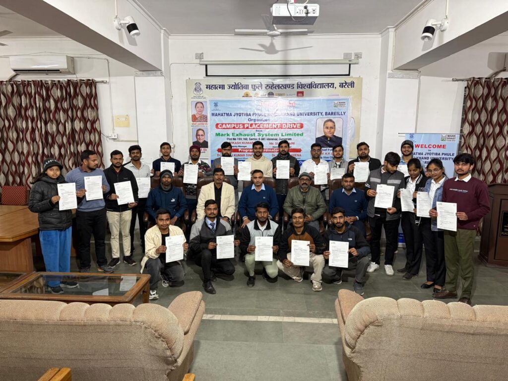 बरेली। महात्मा ज्योतिबा फूले रोहिलखंड विश्वविद्यालय, बरेली में ट्रेनिंग एंड प्लेसमेंट सेल द्वारा एक महत्वपूर्ण प्लेसमेंट ड्राइव का सफलतापूर्वक आयोजन किया गया। प्लेसमेंट ड्राइव का आयोजन कुलपति प्रो के पी सिंह के मार्गदर्शन में ट्रेनिंग एंड प्लेसमेंट सेल में हुआ कार्यक्रम का आयोजन ट्रेनिंग एंड प्लेसमेंट सेल के ऑफिसर डॉ. मनोज कुमार सिंह ने कराया और डिमांड प्लेसमेंट ड्राइव का संचालन डॉ विशाल सक्सेना जी ने किया और मैकेनिकल डिपार्टमेंट के महेश कुमार और हिमांशु गौर भी उपस्थित रहे। इस अवसर पर मार्क एग्जॉस्ट सिस्टम लिमिटेड के असिस्टेंट मैनेजर अमन कौशिक ने कंपनी के प्रोफाइल, कार्यक्षेत्र एवं करियर अवसरों के बारे में विस्तार से जानकारी दी। इसके पश्चात डिप्टी मैनेजर विकास कुमार ने भी कंपनी से संबंधित महत्वपूर्ण जानकारियाँ विद्यार्थियों के साथ साझा कीं। मार्क एग्जॉस्ट सिस्टम लिमिटेड एक भारतीय ऑटोमोटिव मैन्युफैक्चरिंग कंपनी है जो मुख्य रूप से कारों और मोटरसाइकिलों के लिए एग्जॉस्ट सिस्टम (निकास सिस्टम), मफलर, कैटेलिटिक कन्वर्टर, एग्जॉस्ट पाइप और अन्य ऑटो पार्ट्स तैयार और सप्लाई करती है, और इसके प्रोडक्ट बड़े ऑटोमोबाइल निर्माता जैसे मारुति सुजुकी, होंडा आदि को सप्लाई होते हैं। कंपनी गाड़ी के एग्जॉस्ट के अलावा शीट मेटल के पुर्जे, दरवाजे के फ्रेम, शॉक एब्जॉर्बर, पानी/तेल पंप, जैसे कई अन्य ऑटोमोटिव कंपोनेंट्स भी बनाती है, उसके उत्पादन संयंत्र हरियाणा (गुरूग्राम) में स्थित हैं, तथा यह आई.एस.ओ/टी.एस गुणवत्ता मानकों के साथ काम करती है।