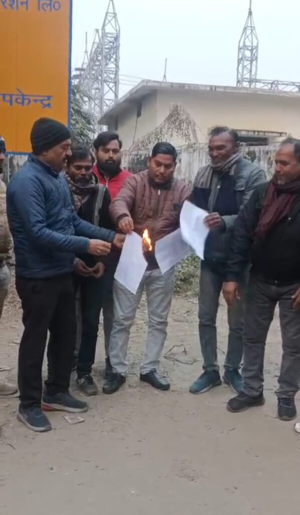 बिजली आउटसोर्स कर्मचारियों ने किया विरोध प्रदर्शन,समझौते पत्र का दहन किया गया