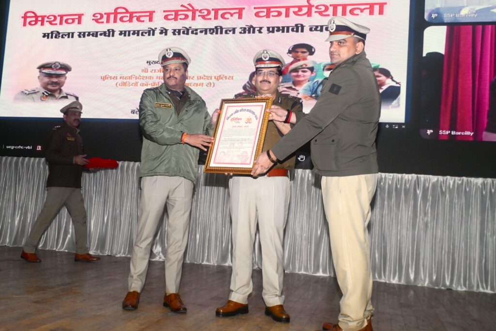 बरेली। महिला सुरक्षा, सम्मान एवं स्वावलंबन को सुदृढ़ करने के उद्देश्य से मिशन शक्ति 5.0 के अंतर्गत बरेली परिक्षेत्र के जनपदों—बरेली, बदायूं, पीलीभीत व शाहजहांपुर—के मिशन शक्ति केंद्रों के प्रभावी संचालन हेतु जीजीआईसी ऑडिटोरियम में कौशल कार्यशाला/गोष्ठी का आयोजन किया गया। कार्यक्रम में पुलिस महानिदेशक उत्तर प्रदेश राजीव कृष्ण ने हाइब्रिड मोड में वीडियो कॉन्फ्रेंसिंग के माध्यम से सहभागिता कर दिशा-निर्देश दिए।