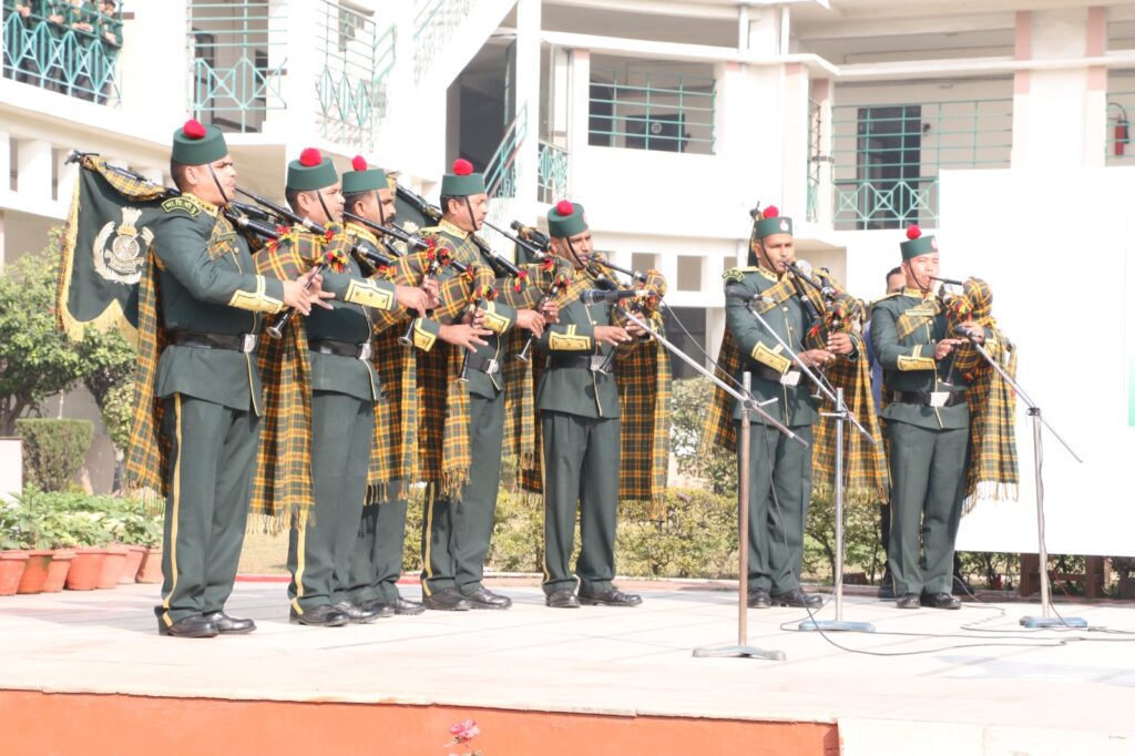 विद्यालय प्रबंधक राजेश जौली, निदेशक त्रिजित अग्रवाल, प्रधानाचार्य रणवीर सिंह रावत और जूनियर विंग की समन्वयक डॉ विनीता सक्सेना ने डॉ मोहित वर्मा, द्वितीय कमान को पुष्पगुच्छ भेंट कर उनका स्वागत किया। प्रधानाचार्य श्री रावत ने उनका परिचय प्रस्तुत किया। तत्पश्चात असिस्टेंट सब इंस्पेक्टर मोहम्मद दानिश के संचालन में बैंड कमांडर ताजवर सिंह के नेतृत्व में बैंड ने विभिन्न फिल्मी, गैर फिल्मी और देशभक्ति पूर्ण धुनों के माध्यम से विद्यार्थियों में उत्साह का संचार किया। कार्यक्रम में अपने संबोधन में डॉ मोहित वर्मा, द्वितीय कमान ने कहा कि सैनिक देश की रक्षा में सजग रहकर अपना कर्तव्य निभाते हैं और देश की सीमाओं को सुरक्षित रखते हैं। विद्यालय प्रबंधक राजेश जौली ने धन्यवाद ज्ञापित करते हुए कहा कि सैनिक सीमाओं की रक्षा करते हैं तो हमारा कर्तव्य है कि हम सैनिकों और उनके परिवारजनों के प्रति सम्मान और सहायता का भाव रखें। कार्यक्रम का समापन बैंड द्वारा वंदे मातरम् की सुरीली उत्साहित करने वाली धुन के माध्यम से हुआ। कार्यक्रम का संचालन रजनीश त्रिवेदी और मोहम्मद दानिश ने किया। इस अवसर पर समस्त विद्यार्थीगण एवं अध्यापकवृंद उपस्थित रहे।