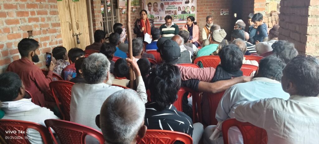 चौपालों को संबोधित करते हुए जिला कांग्रेस के बीएलए 1,एस आई आर के कोऑर्डिनेटर ओमकार सिंह ने कहा की गहन पुनरीक्षण में फॉर्म नंबर 6 और 7 बगैर सत्यापन के द्वारा जमा किये जा रहे हैं ऐसी सूचना मिली है इस संबंध में एक प्रार्थना पत्र आज जिला निर्वाचन अधिकारी को निर्वाचन कार्यालय में भी आज दिया गया है उन्होंने कहा कि हमारे बूथ लेवल एजेंट आगे आने वाले शनिवार को बूथों पर जाकर चेक करें कि बिना सत्यापन के फॉर्म 6 और 7 जमा नहीं होने चाहिए।