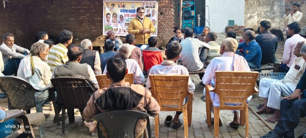 केंद्र सरकार मनरेगा के बजट में कटौती काम के दिनों में कमी और मजदूरी भुगतान में हो रही देरी से करोड़ों परिवारों का जीवन प्रभावित हो रहा है। बीजेपी सरकार मनरेगा को खत्म करने की योजना बना रही है। पूर्व जिला अध्यक्ष कोऑर्डिनेटर SIR ओमकार सिंह ने कहा एस आई आर में शुरू से ही गड़बड़ हो रही है जहां लोगों को दो-दो फार्म देने थे वहां एक ही फॉर्म दिए गए हैं और शुरू में इतना कम टाइम दिया गया की कई बी एल ओ की मौत हो गई अब बाद में बीजेपी के कहने पर इस टाइम को लगातार बढ़ाया जा रहा है लगता है बीजेपी के ही वोटर रह गए हैं । पूर्व जिला अध्यक्ष ने कहा कि एस आई आर के फार्म 6 और 7 के सत्यापन के बाद ही जमा करवाएं ।
