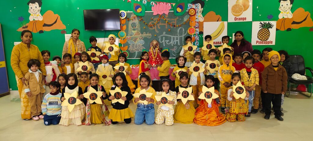 वसंत पंचमी के पावन अवसर पर सभी विद्यार्थी एवं शिक्षक पीले रंग की वेशभूषा धारण कर विद्यालय पहुँचे, जिससे संपूर्ण परिसर पीले रंग की छटा से सराबोर हो गया। कार्यक्रम का शुभारंभ विद्यालय के डायरेक्टर अनुज वार्ष्णेय, विद्यालय निदेशिका साधना वार्ष्णेय एवं प्रधानाचार्या रूपा माहेश्वरी द्वारा माँ सरस्वती के समक्ष दीप प्रज्वलन, तिलक एवं माल्यार्पण कर किया गया। इस अवसर पर माँ सरस्वती से विद्यार्थियों के उज्ज्वल भविष्य, ज्ञान और सद्बुद्धि की कामना की गई।कार्यक्रम के दौरान नन्हे-नन्हे विद्यार्थियों के लिए वसंत पंचमी से संबंधित विभिन्न रचनात्मक एवं मनोरंजक गतिविधियों का आयोजन किया गया, जिनमें बच्चों ने पूरे उत्साह के साथ भाग लिया। इन गतिविधियों के माध्यम से बच्चों को भारतीय संस्कृति, त्योहारों के महत्व और आपसी सहयोग की भावना से परिचित कराया गया।इस शुभ अवसर पर विद्यालय में अभिभावकों की भी विशेष उपस्थिति देखने को मिली।