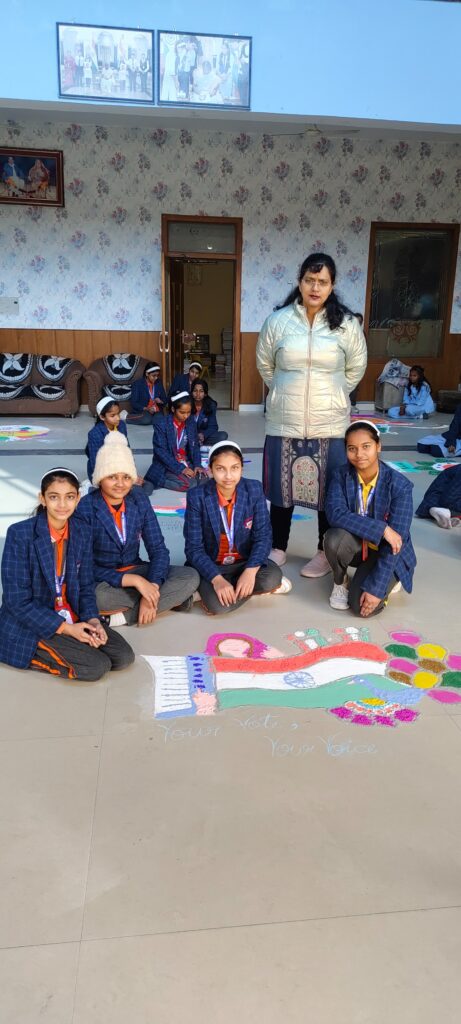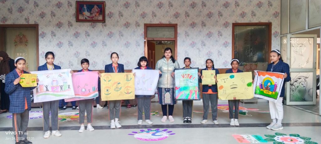 कार्यक्रम के दौरान विद्यार्थियों ने सुंदर एवं आकर्षक रंगोलियाँ तथा प्रभावशाली पोस्टर बनाकर सभी को मतदान के प्रति जागरूक किया। रंगोलियों और पोस्टरों के माध्यम से बच्चों ने “My India, My Vote”, “मेरा वोट, मेरी ताकत” और “सशक्त भारत के लिए मतदान” जैसे संदेश देकर यह स्पष्ट किया कि एक-एक वोट देश के भविष्य को तय करता है।