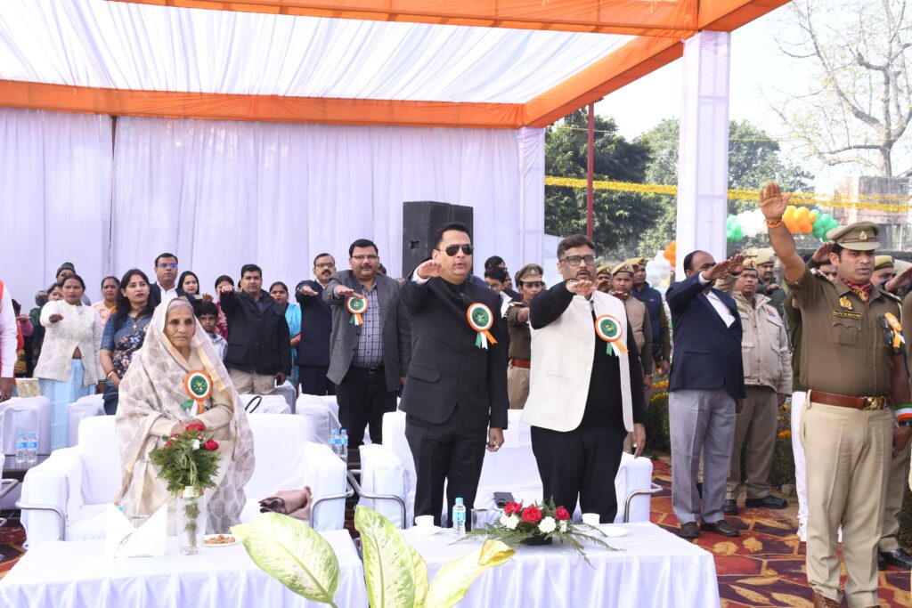 मुख्य अतिथि माननीय डा0 अरूण कुमार जी राज्य मंत्री (स्वतंत्र प्रभार), वन, पर्यावरण, जन्तु उद्यान एवं जलवायु परिवर्तन विभाग उत्तर प्रदेश द्वारा जनपद के वीर शहीदो को याद करते हुए तथा संविधान के उच्च आदर्शो से अवगत कराते हुए कार्यक्रम को संबोधित किया गया। मुख्य अतिथि के अभिभाषण के पश्चात् जनपद के शहीदो एवं स्वतंत्रता संग्राम सेनानियो के परिजनो को सम्मानित किया गया सर्वप्रथम मुख्य अतिथि द्वारा सराहनीय सेवा के लिए श्री रजनीश कुमार उपाध्याय क्षेत्राधिकारी नगर को गैलेंट्री अवार्ड (वीरता पदक) से सम्मानित किया गया तथा प्रथम,द्वितीय तथा तृतीय परेड कमाण्डर को मोमेन्टों देकर सम्मानित किया गया । महोदय द्वारा उ0नि0 श्री सुधीर चन्द्र सेन, उ0नि0 श्री हरिभान सिंह, उ0नि0 महफूज अली, उ0नि0 श्री सुरेश, मु0आ0प्रो0 श्री मुनेश कुमार, मु0आ0प्रो0 श्री कमल सिंह, मु0आ0चा0 श्री मुहम्मद मुस्तफा, मु0आ0/उ0नि0 श्री विपिन कुमार को गृह मंत्रालय भारत सरकार द्वारा अति उत्कृष्ट सेवा पदका निरीक्षक श्री राजेन्द्र सिंह पुण्डीर, उ0नि0 श्री उदयवीर सिंह, मु0आ0 स0पु0 श्री शिवप्रताप सिंह, मु0आ0 स0पु0 श्री नत्थू सिंह, मु0आ0 चालक श्री शिवनन्दन सिंह को पुलिस महानिदेशक, उत्तर प्रदेश द्वारा सराहनीय सेवा सम्मान चिन्ह एवं प्रमाण-पत्र। मु0आ0 फिरोज खान, आरक्षी श्री मनीष कुमार को पुलिस महानिदेशक,उत्तर प्रदेश द्वारा प्रशंसा चिन्ह (रजत) एवं प्रमाण-पत्र। पुलिस उपाधीक्षक श्री सुनील कुमार सिंह, निरीक्षक श्री गुड्डू सिंह, उ0नि0 यातायात श्री मुरारी लाल, अग्निशमन द्वितीय अधिकारी श्री शैलेन्द्र सिंह, मु0आ0 पीटीआई अमित कुमार राणा, म0आ0 ना0पु0 वंदना भण्डारी को महाकुम्भ सेवा मेडल एवं प्रमाण-पत्र एवं परेड कमाण्डर प्रथम, परेड कमाण्डर द्वितीय एवं परेड कमाण्डर तृतीय को मोमेन्टों एवं प्रशस्ति पत्र प्रदान किये गये। इस अवसर पर वरिष्ठ पुलिस अधीक्षक महोदय द्वारा 45वीं वाहिनी पीएसी बैण्ड को रू0 5000/-नगद पुरूस्कार, रंगोली वनाने वाले कर्मियों को उत्साह वर्धन हेतु रू0 7000/- नगद पुरूस्कार, वामा सारथी प्रभारी म0आ0 नीलम व मेडिकल टीम को 7000/- नगद पुरुस्कार से सम्मानित किया गया एवं रैतिक परेड़ में भाग लेने वाले अधि0/कर्म0 गणों व ग्राउण्ड की साज-सज्जा में लगे अधि0/कर्म0 गणों को 05 दिवस का पारितोषिक अवकाश देने की घोषणा की गयी । एवं तीनो परेड कमाण्डर तथा टोली कमाण्डरो को प्रतीक चिन्ह देकर प्रशस्ति पत्र प्रदान किये गये ।