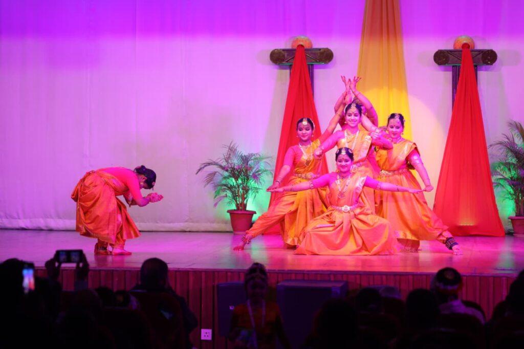 भरतनाट्यम के गुरुजनों और विद्यार्थियों ने इसमें अपनी प्रतिभा का प्रदर्शन किया। श्री शारदा उत्सव का आरंभ भरतनाट्यम के विद्यार्थी आद्या ग्रोवर, वान्या, अवंतिका, मेहर, शांभवी, प्राग्वी, अनिका, अनंशी, अंबिका, चिरन्य, मायरा, पारया, बंदगी, भाव्या, साक्षी, आराध्या, साव्या, अनुरति, सान्वी श्लोक नित्यम, सरस्वती वंदना, गणेश स्तुति, त्रिपुराष्टकम, सरस्वती स्त्रोतम, अष्टलक्ष्मी, सरस्वती स्तुति पर शानदार प्रस्तुति दी। भरतनाट्यम गुरु रोबिन ए ने गंगावतरण पर एकल और भरतनाट्यम गुरु तनया भट्टाचार्य के साथ शारदा नमोस्तुभ्यम को अपनी नृत्य प्रतिभा से दर्शकों के सामने प्रस्तुत कर वाहवाही हासिल की।