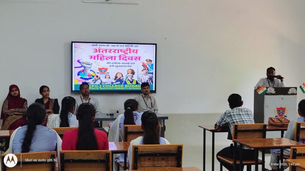 बदायूँ। जे. एस. (पी.जी.) कॉलेज, में राष्ट्रीय सेवा योजना (एनएसएस) की दोनों इकाइयों के तत्वावधान में अंतर्राष्ट्रीय महिला दिवस के अवसर पर एक कार्यक्रम का आयोजन किया गया। कार्यक्रम में कॉलेज डायरेक्टर विकास यादव, कॉलेज प्राचार्य डॉ. निशि अवस्थी, शिक्षकगण तथा एन एस एस स्वयंसेवकों ने उत्साहपूर्वक भाग लिया।