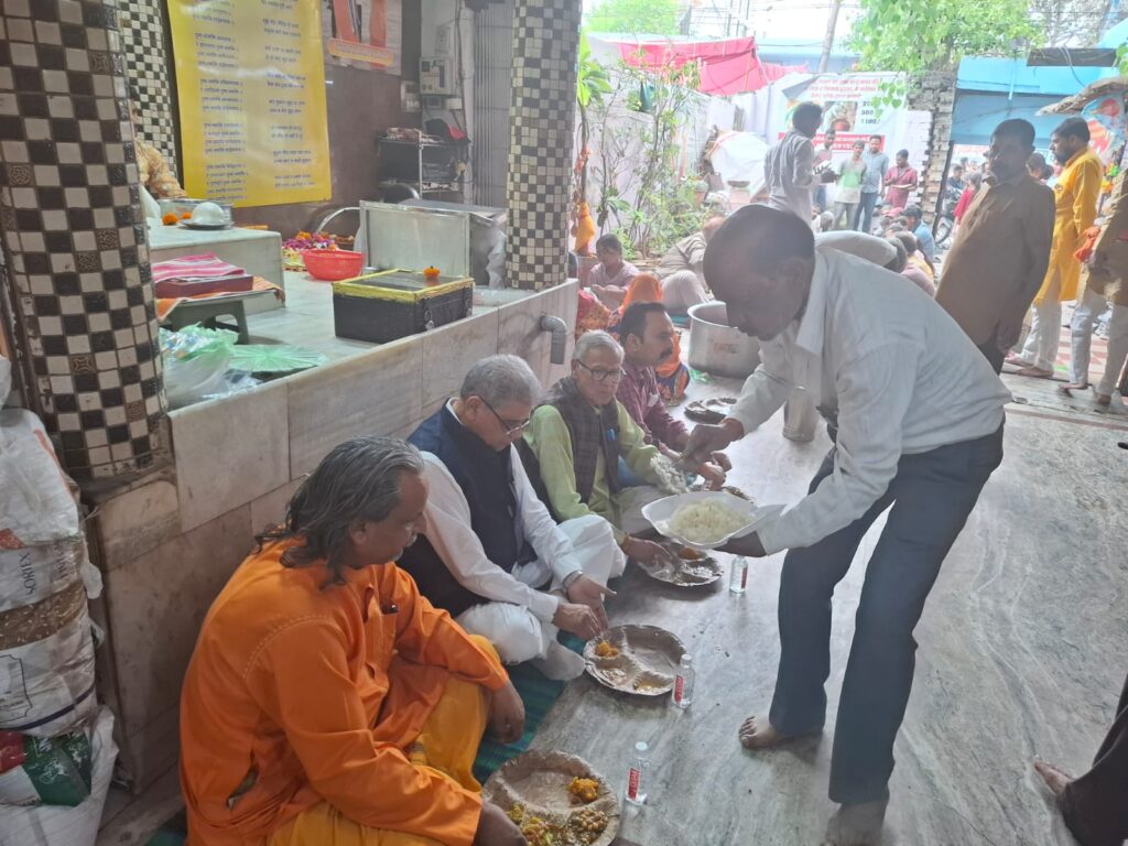 मंदिर के महंत पंडित सुशील पाठक ने एक जानकारी साझा करते हुए बताया कि इस वर्ष गैस सिलेंडर की उपलब्धता में दिक्कत आने से भंडारे का प्रसाद पूरी तरह पारंपरिक तरीके से लकड़ी और कंडों के चूल्हे पर तैयार किया गया। इस विधि से बने प्रसाद की खुशबू और शुद्धता ने श्रद्धालुओं को पुरानी परंपराओं की याद दिला। दोपहर ठीक 12 बजे भगवान श्री राम के जन्मोत्सव के अवसर पर विशेष पूजन और आरती की गई। भगवान को भोग लगाने के बाद कन्या पूजन संपन्न हुआ, जहां बटुक और कन्याओं को भोजन कराकर उनका आशीर्वाद लिया गया। मध्याह्न आरती के पश्चात मुख्य भंडारे का शुभारंभ हुआ। इस अवसर पर मुख्य रूप से वन एवं पर्यावरण मंत्री डॉ. अरुण कुमार, वरिष्ठ भाजपा नेता अनिल कुमार सक्सेना और पार्षद राजेश अग्रवाल, संजय आयलानी, गौरब अरोरा, रामबहादुर, इन्द्रेश बिसाल अग्रवाल, सुरेंद्र मिश्रा ममता, सौरभ अग्रवाल, त्रिलोक दयाल, अधीर सक्सेना महानगर अध्यक्ष छंगामल मौर्य सहित कई गणमान्य व्यक्तियों ने मंदिर पहुंचकर मत्था टेका और प्रसाद ग्रहण किया। पूरा वातावरण ‘जय श्री राम’ के जयकारों से गुंजायमान रहा। निर्भय सक्सेना