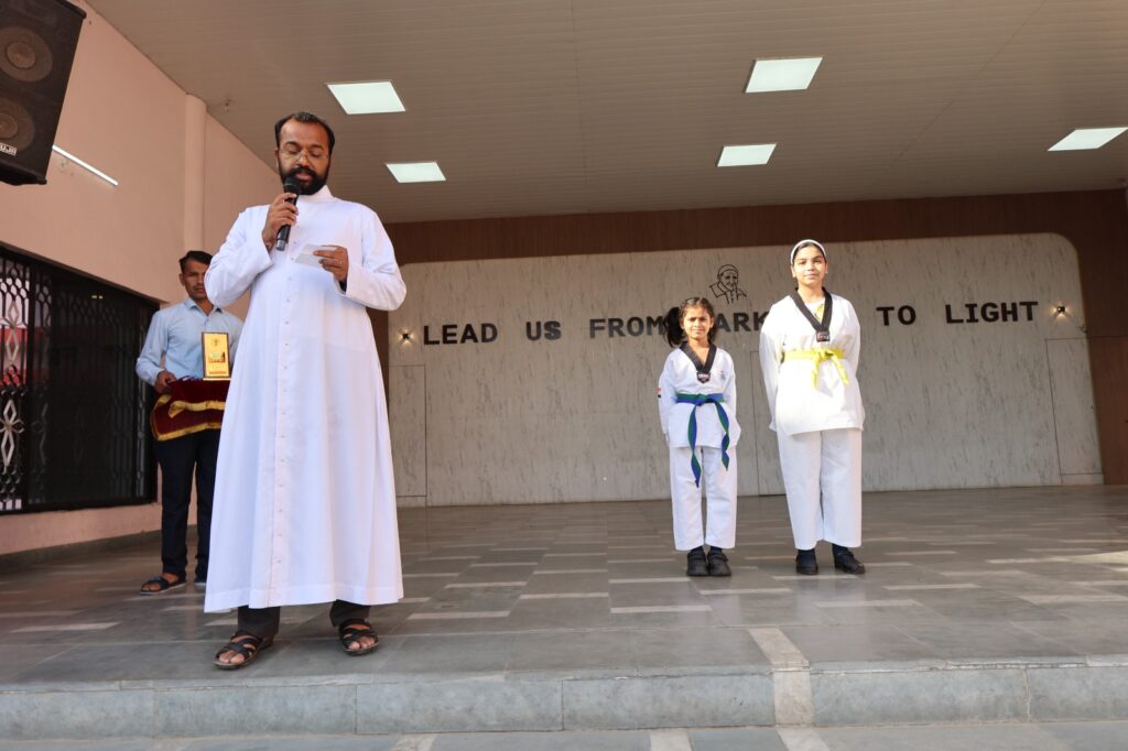 इन प्रतिभाशाली खिलाड़ियों की इस उपलब्धि पर विद्यालय के प्रिंसिपल फादर अज़िन पॉल ने उन्हें और उनके अभिभावकों को विद्यालय परिसर में विशेष रूप से सम्मानित किया। इस अवसर पर फादर अज़िन पॉल ने मेडल विजेता छात्रों को प्रोत्साहित करते हुए कहा कि खेल हमारे जीवन का अभिन्न अंग हैं और इन बच्चों ने अपनी कड़ी मेहनत और अनुशासन से यह मुकाम हासिल किया है। उन्होंने उर्वा खान और अलिशबा के उज्ज्वल भविष्य की कामना की और उनके माता-पिता को भी इस गौरवपूर्ण उपलब्धि पर बधाई दी।विद्यालय के सभी शिक्षकों और स्टाफ सदस्यों ने भी इस सफलता पर गर्व व्यक्त करते हुए दोनों छात्राओं को ढेर सारी शुभकामनाएँ दीं।