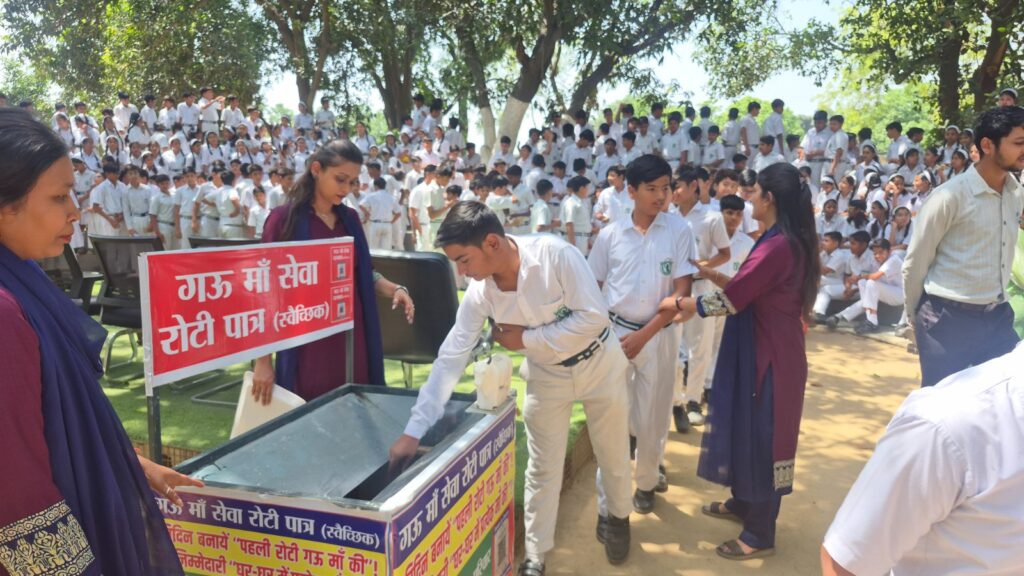 बदायूँ। हमारी भारतीय संस्कृति मेँ गाय को माता का स्थान दिया गया है। पहले घर घर मेँ गाय के नाम की पहली रोटी बनाई जाती थी। आज भी बहुत से घरों मेँ इस परम्परा को बनाये रखा गया है। लेकिन आधुनिकता और भागदौड़ भरी जिंदगी मेँ अब धीरे धीरे यह परम्परा विलुप्त होती जा रही है। लेकिन ब्रह्मदत्त गौशाला धाम की सराहनीय जागरूक पहल से फिर से यह परम्परा अनवरत शुरू हो जाएगी। दिल्ली पब्लिक स्कूल बदायूँ के सहयोग से ब्रह्मदत्त गौशाला धाम ने “गऊ माँ सेवा रोटी पात्र ” बनवाकर आज डीपीएस प्रांगण मेँ रखवाया है। इससे निश्चित ही अब प्रत्येक बच्चे के हाथों से गाय के नाम से रोटी डालना प्रतिदिन प्रारम्भ हो जायेगा। डीपीएस ने इस पवित्र कार्य के सहयोगी बनकर बहुत पुण्य कार्य किया है।
