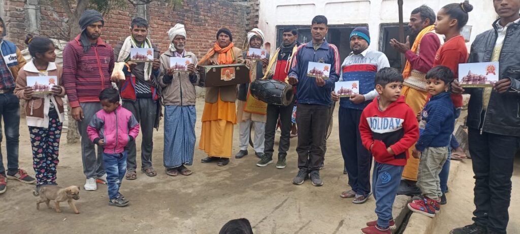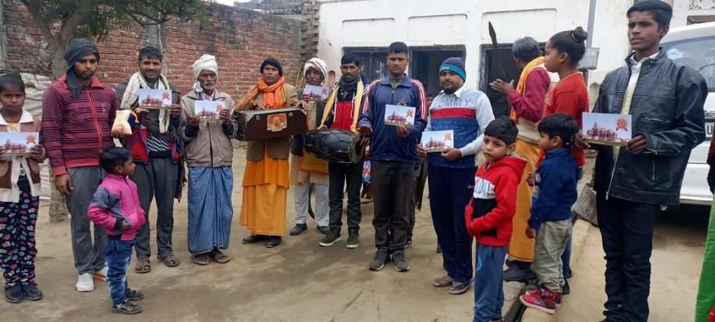 बिल्सी। बदायूं विभाग के मंडल रिसौली के भिलौलिया में पूजित अक्षत वितरण महा संपर्क अभियान के अन्तर्गत श्री राम जन्मभूमि तीर्थ क्षेत्र अयोध्या से आये पूजित पीले अक्षत साहित्य और श्रीराममंदिर के चित्र घर घर जाकर दिये ढोलक बाजे चिमटा के साथ भजन कीर्तन करते हुए स्वयंसेवक भिलौलिया के हर घर पहुंचे और 22 तारीख को भगवान श्री राम के प्राण प्रतिष्ठा के अवसर पर हर घर में दीवाली उत्सव मनाने का आग्रह किया