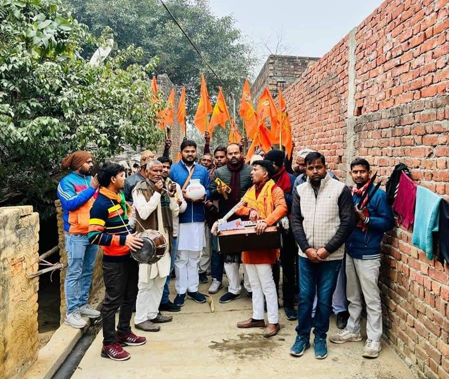 बदायूँ :- श्रीरामतीर्थ क्षेत्र अयोध्या में 22 जनवरी को रामलला की प्राण प्रतिष्ठा हेतु पूजित अक्षत देकर निमंत्रण जिले भर में रामदूत घर पहुँचा रहे हैं। राष्ट्रीय स्वयंसेवक संघ के विभाग प्रचारक श्री विशाल, नगर प्रचारक श्री शिवम एवं भाजपा के मीडिया प्रभारी आशीष शाक्य ने ग्राम शेखूपुर और लौड़ा बहेड़ी में घर-घर जाकर अयोध्या से आए पूजित अक्षत, राम मंदिर का चित्र देकर निमंत्रण दिया। विभाग प्रचारक श्री विशाल ने कहा 22 जनवरी को 500 वर्षों बाद श्रीरामलला की प्राण प्रतिष्ठा होगी बहुत गर्व की बात है कि ऐसे पुण्य कर में हम सभी रामदूत बढ़-चढ़कर भाग ले रहे हैं। राम मंदिर हमारी आस्था का प्रतीक है।