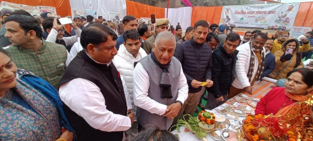 गाजियाबाद। केंद्रीय सड़क परिवहन राजमार्ग एवं नागर विमानन राज्यमंत्री जनरल डॉ. वीके सिंह अपने संसदीय क्षेत्र गाजियाबाद के भीमाबाई पार्क, माता कॉलोनी, विजय नगर में शुक्रवार को आयोजित ‘विकसित भारत संकल्प यात्रा’ में पहुंचे।