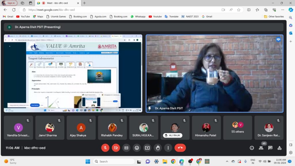 बदायूँ। आवास विकास स्थित राजकीय महाविद्यालय में आईआईटी कानपुर के वर्चुअल लैब प्लेटफार्म के माध्यम से छह दिवसीय कार्यशाला के चौथे दिन वर्चुअल लैब में भौतिक विज्ञान के बीएससी तृतीय सेमेस्टर के छात्र-छात्राओं को टैंजेंट गलवानोमीटर के प्रयोग के लिए प्रशिक्षित किया गया। वर्चुअल लैब कार्यशाला में व्याख्यान देते हुए पीएसआईटी कानपुर की एसोसिएट प्रोफेसर डॉ अपर्णा दीक्षित ने कार्यशाला में पंजीकृत छात्र-छात्राओं को बहुमूल्य उपकरण “टैंजेंट गैलवानोमीटर” की क्रिया विधि के बारे में विस्तृत रूप से समझाया। डॉ अपर्णा दीक्षित ने व्याख्यान पूर्ण होने पर देश के विभिन्न राज्यों मिजोरम, मणिपुर, तमिलनाडु, उड़ीसा, बिहार, उत्तर प्रदेश, उत्तराखंड, मध्य प्रदेश, छत्तीसगढ़, महाराष्ट्र, असम, आंध्र प्रदेश, गोवा, दिल्ली, पश्चिम बंगाल, झारखंड इत्यादि के प्रतिभागी छात्र-छात्राओं के सवालों का निराकरण किया। उन्होंने छात्र-छात्राओं को आईआईटी कानपुर के अमृतालैब की वेबसाइट के माध्यम से प्रयोग करने के लिए प्रेरित किया।