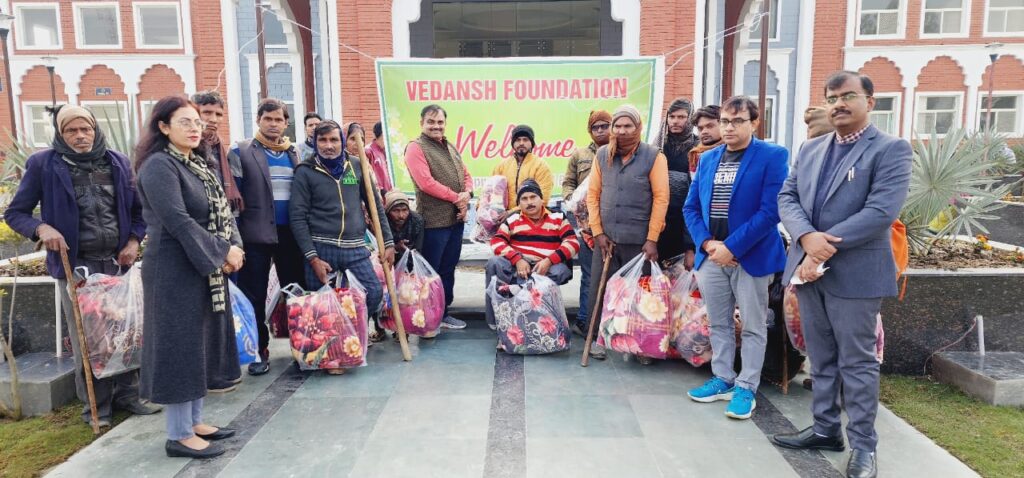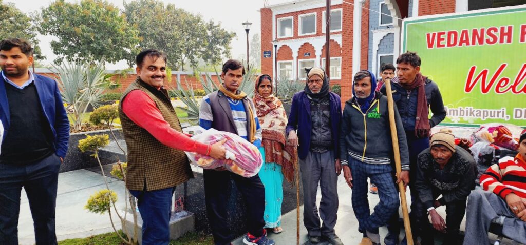 बदायूँ। वेदांश फाउंडेशन अंबिकापुरी डी. एम.रोड के अध्यक्ष वेदब्रत त्रिवेदी के नेतृत्व में दिव्यांग जनों को कड़ाके की ठंड से बचने के लिए कंबल वितरित किए गए।