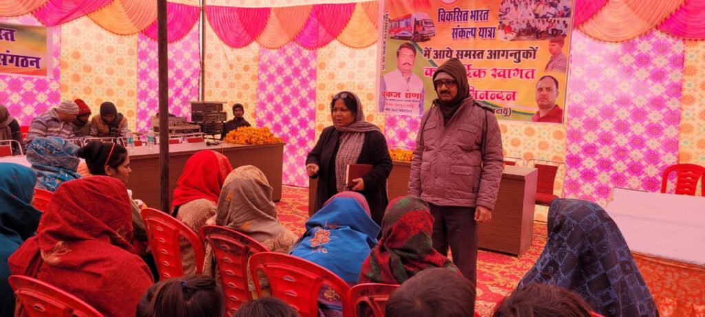 बदायूँ। भारत सरकार के द्वारा चलाए जा रहे विकसित भारत संकल्प यात्रा के जन संवाद शिविर में मंडलायुक्त बरेली का प्रतिनिधित्व करते हुए शासन द्वारा नामित यात्रा की जिला नोडल अधिकारी क्षेत्रीय उच्च शिक्षा अधिकारी डॉ संध्या रानी ने बिसौली ब्लॉक के ग्राम शेखुपुरा एवं भानपुर में जनता से संवाद स्थापित कर उनकी समस्याओं को सुना। उन्होंने यात्रा की आख्या बना कर मंडलायुक्त सौम्या अग्रवाल को प्रेषित किया।