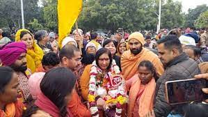 मथुरा। भगवान श्रीकृष्ण की नगरी वृंदावन से श्रीराम की नगरी अयोध्या के लिए साध्वी ऋतंभरा रवाना हो गई हैं। वह अपने साथ ब्रज की रज और यमुना जी का जल लेकर निकलीं हैं। उन्होंने बड़े हर्ष के साथ अयोध्या धाम के लिए प्रस्थान किया। इससे पहले वात्सल्य ग्राम में उत्सव मनाया गया। साध्वी ऋतंभरा के रवाना से पहले भक्तजन ढोल नगाड़े की धुन पर जमकर झूमे। साध्वी ने मंत्रोच्चारों के मध्य सर्व मंगला देवी मंदिर में पूजन किया। यह वही मंदिर है, जहां चांदी के कलश में यमुना जल और ब्रज रज रखी गई थी। यहां भक्तों ने नाचते गाते हुए परिक्रमा की। साथ ही मंत्रो के साथ चांदी के कलश की आरती उतारी। वहीं भक्तों ने जय श्री राम के नारे लगाते हुए अपना उत्साह प्रदर्शित किया। इस मौके पर साध्वी ऋतंभरा ने कहा कि आज वर्षों बाद हमारा सपना साकार हुआ है। अयोध्या में श्रीरामलला की भव्य प्राण प्रतिष्ठा का आयोजन हो रहा है। हमें लगा कि आखिर वहां क्या लेकर जाया जाए? क्योंकि भगवान राम के लिए इस समय सोने चांदी के साथ कीमती उपहार सब लेकर जा रहें है। ऐसे में हमारी धरोहर ब्रज रज और यमुना मैया का जल ही सबसे प्रिय उपहार लगा। इसे आज अयोध्या लेकर जा रही हूं।