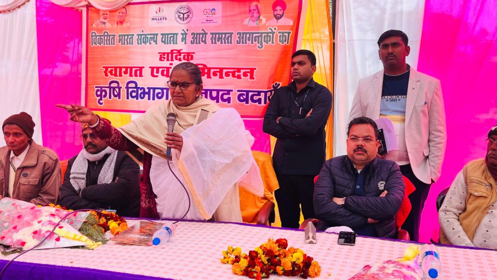 बदायूँ । विकसित भारत संकल्प यात्रा के कार्यक्रम बदायूँ में जगह जगह ग्राम पंचायत स्तर पर हुए जिसमें एलडी वैन के माध्यम से योजनाओं को दिखाया गया साथ ही भाजपा जनप्रतिनिधियों व कार्यकर्ताओं ने सरकार की जनकल्याणकारी योजनाओं के बारे में लोगो को अवगत कराया। प्रभारी मंत्री गुलाब देवी ने ब्लॉक सालारपुर के सिखरापुर गांव में कहा नरेंद्र मोदी की सरकार में योजनाओं का लाभ गरीब से गरीब आदमी तक पहुंच रहा है। किसान सम्मान निधि के माध्यम से गरीब किसानों को सशक्त करने का काम किया जा रहा है। साथ ही उन्होंने कहा मोदी की गारंटी का गाड़ी का मतलब अंतिम पंक्ति में खड़ा व्यक्ति को भी सरकारी योजनाओं का लाभ मिल सके इसी संकल्पनाओं के साथ विकसित भारत संकल्प यात्रा की शुरुआत की गई है।