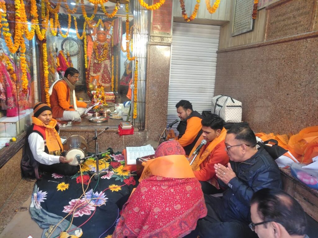 बदायूं। ‘सराफा बाजार स्थित 84 घंटा हनुमान मंदिर पर आज प्रातः काल अयोध्या में होने वाले राष्ट्र पुरुष भगवान श्री राम के 500 वर्ष के पश्चात वापस अयोध्या में प्राण प्रतिष्ठित होने पर भक्तों ने हर्ष व्यक्त किया। प्रातः काल मंदिर के पुजारी सुधीर मिश्रा ने श्री राम दरबार की मूर्तियों को नवीन वस्त्र आभूषण पहना कर भगवान श्री राम का भव्य एवं दिव्य श्रृंगार किया | दोपहर में 56 भोग का दर्शन कराकर प्रभु श्री राम को भोग लगाया। दोपहर 2:00 बजे से संगीतमय सुंदरकांड का पाठ किया गया।