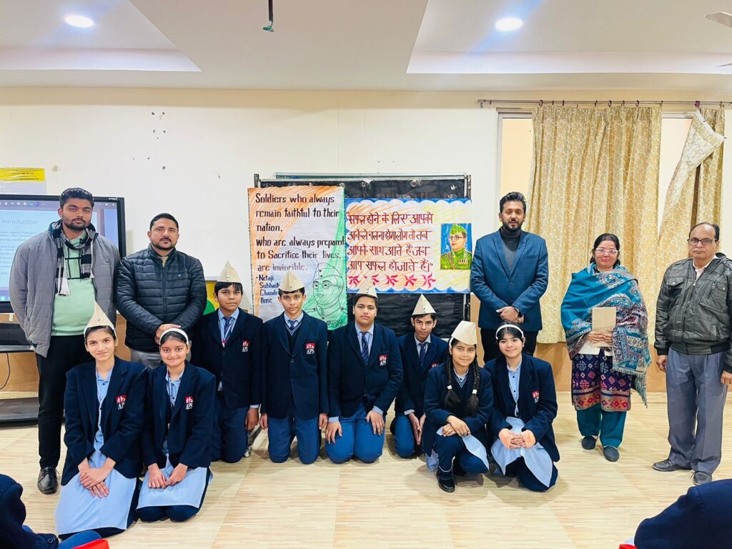 द्वितीय विश्वयुद्व के दौरान, अंग्रेजों के खिलाफ लड़ने के लिए, उन्होंने जापान के सहयोग से आजाद हिंद फौज का गठन किया। ’’जय हिंद’’ का नारा भारत का राष्ट्रीय नारा बन गया है। आपका नारा ’’तुम मुझे खून दो मैं तुम्हें आजादी दूगाँ’’ का नारा भी नेताजी का ही था, जिसने भारत के युवाओं में एक नया जोश भरने का कार्य किया। नेताजी ने 5 जुलाई 1943 को सिंगापुर के टाउन हाल के सामने सुप्रीम कमांडर के रूप में सेना को संबोधित करते हुए ’’ दिल्ली चलो’’ का नारा दिया। देश की आजादी में नेताजी के योगदान को भुलाया नहीं जा सकता। विद्यालय के निदेशक निलांशु अग्रवाल ने नेता जी सुभाष चंद्र बोस तथा आजादी के अन्य महापुरुषों के कृतित्व पर प्रकाश डाला। आपने कहा कि आज के इस कार्यक्रम का उद्देश्य नेताजी को याद करना तो है ही साथ ही साथ हमें अपने अन्य महापुरुषों के बारे में भी जानकारी हासिल करनी चाहिए। आपने विद्यार्थियों को अपने आस-पास घट रहीं घटनाओं की भी जानकारी करनी चाहिए। आपने भारत की संपन्न व सभ्य संस्कृति के बारे में बताया। विद्यार्थियों से इतिहास की जानकारी करने के लिए इतिहास की पुस्तकों को पढ़ने के लिए कहा।