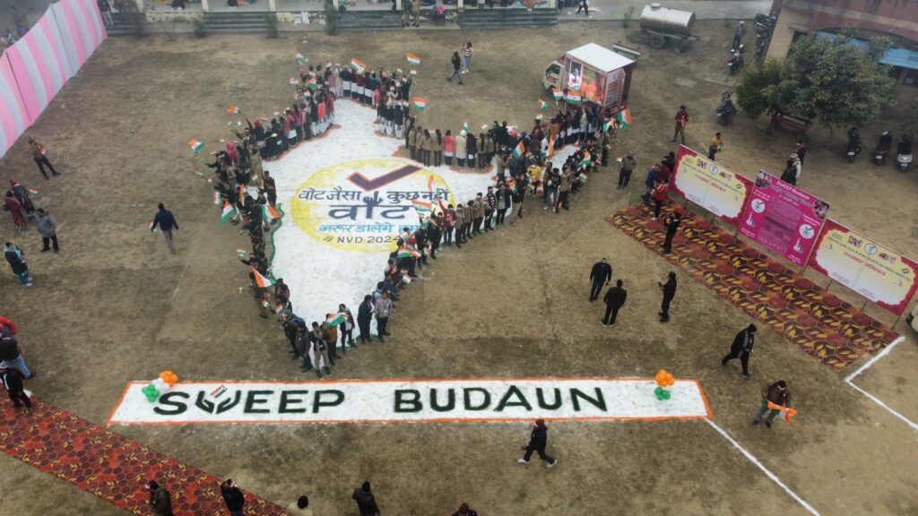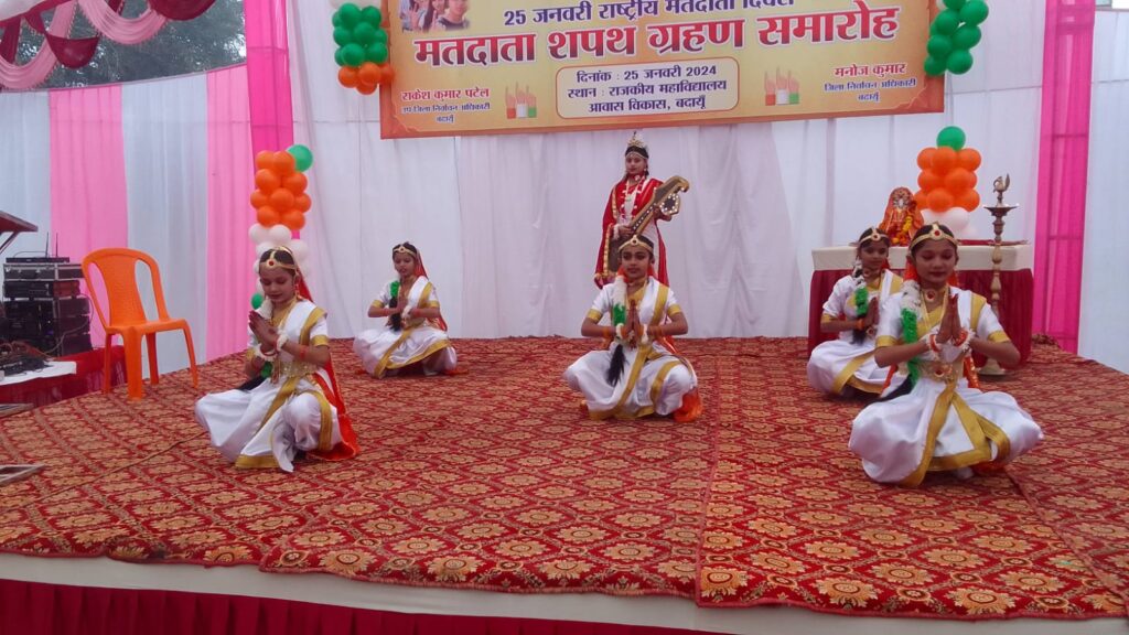 बदायूँ। 14वें राष्ट्रीय मतदाता दिवस के अवसर पर राजकीय महाविद्यालय आवास विकास में मतदाता शपथ ग्रहण समारोह का शुभारंभ जिलाधिकारी मनोज कुमार ने दीप प्रज्वलन कर किया। उन्होंने कहा कि सभी मतदाता आगामी निर्वाचन में अपने मताधिकार का प्रयोग अवश्य करें। उन्होंने निर्वाचन एवं स्वीप गतिविधियों की फोटो प्रदर्शनी का फीता काटकर व आगामी लोकसभा चुनाव 2024 में जनपद बदायूं में शत प्रतिशत मतदान हेतु हस्ताक्षर कर हस्ताक्षर अभियान का शुभारंभ किया।