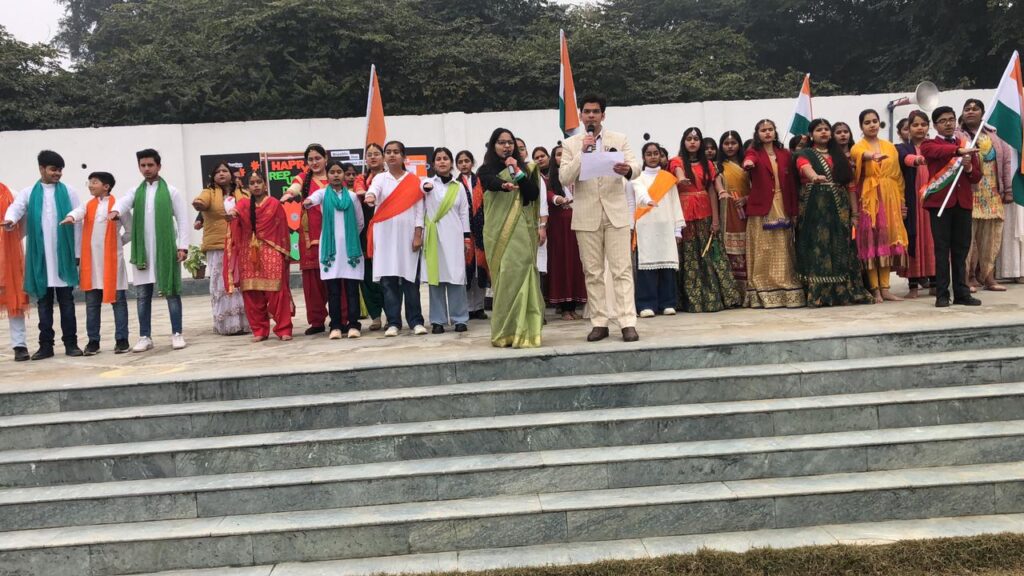 बच्चों ने देशभक्ति के गानों पर रंगारंग नृत्य प्रस्तुत किया।अभियुदय व शिविका ने सभी को शपथ दिलायी। उनीब हाशमी,उमैज़ा ख़ान,तहुरा रहमान,अलीशबा और शांभवी ने अपने उद्बोधन से सभी का मन मोह लिया।