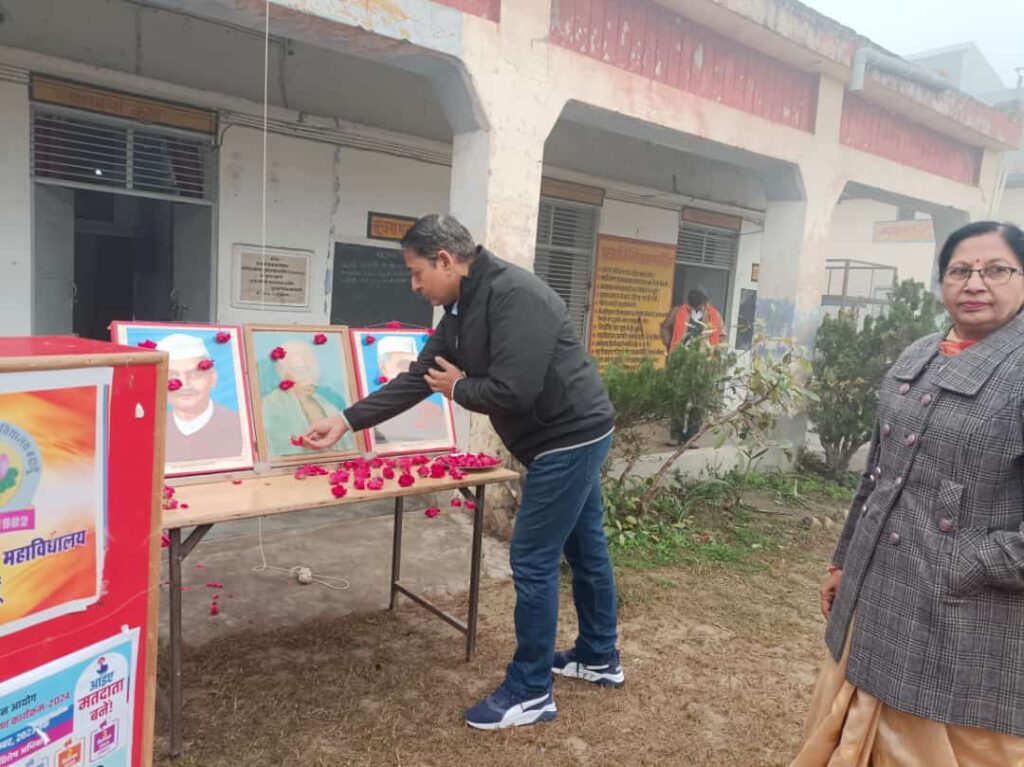 तभी भारत देश एक लोकतांत्रिक, संप्रभु तथा गणतंत्र देश घोषित हो गया । महाविद्यालय के अध्यक्ष एवं मुख्य अतिथि विशाल रस्तोगी जी ने कहा कि यह संविधान ही है जो देश के नागरिकों को लोकतांत्रिक तरीके से अपनी सरकार चुनने का अधिकार देता है,इसी ऐतिहासिक और शुभ दिन की 75वां वर्षगांठ एवं बधाई है।इस अवसर पर विशिष्ट अतिथि महाविद्यालय के गौरव स्तोगी जी ने सभी को हार्दिक बधाई देते हुए कहा कि आज हर नागरिक को भारत की गौरव-गाथा पर गर्व का अनुभव होता है।