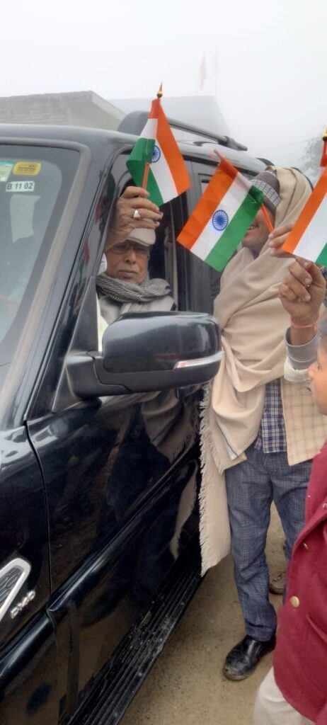 सहसवान। जिले के वरिष्ठ सपा नेता नईमुल हसन उर्फ लड्डन मियां ने 75 वें गणतंत्र दिवस पर 10 स्कूलों में पहुंचकर बच्चों को तिरंगे झंडे ,कैप एवं मिठाई वितरण की। वहीं झंडे एवं कैप लगाकर नन्हे, मुन्ने बच्चों के चेहरे खिल उठे। 75 वें गणतंत्र दिवस के मौके पर समाजवादी पार्टी के वरिष्ठ नेता नईमुल हसन उर्फ लड्डन मियां के द्वारा कादराबाद मदरसे के स्कूल में ध्वजारोहण किया गया।