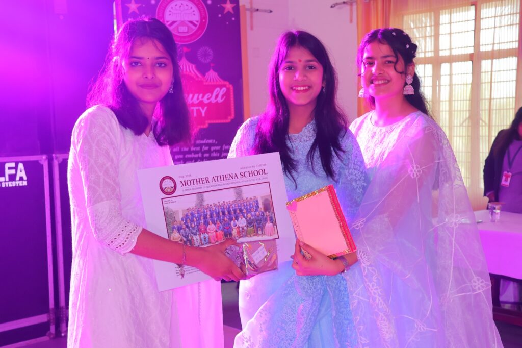 बदायूं। मदर एथीना स्कूल में आज कक्षा-12 के विद्यार्थियों की बोर्ड परीक्षा से पूर्व उनको परीक्षा के तनाव से दूर बिना किसी भी दबाव के उत्साह और उमंग का वातावरण प्रदान कर परीक्षा को किसी पर्व और त्योहार के समान मनाने हेतु ‘फेयरवेल पार्टी’ का आयोजन किया गया। जिसके अंतर्गत कक्षा-11 के विद्यार्थियों द्वारा अपने सीनियर्स के लिए शुभकामनायें देते हुए टाइटल्स के साथ-साथ उपहार प्रदान किए गए। इसके अतिरिक्त बच्चों द्वारा शानदार सांस्कृतिक कार्यक्रमों की प्रस्तुति दी गई।