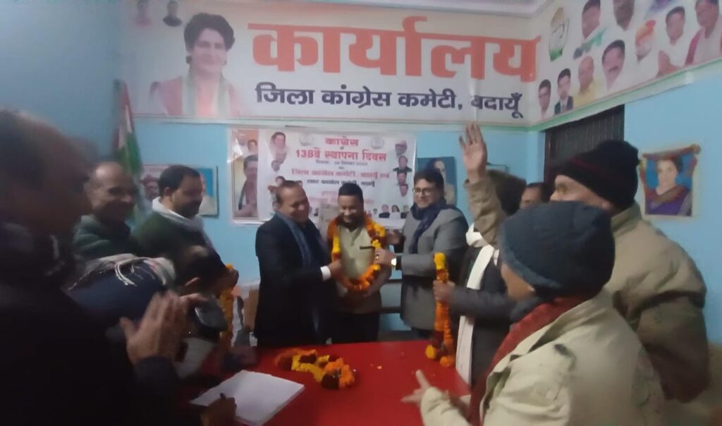 बदायूँ ।जिला कांग्रेस कमेटी अध्यक्ष ओमकार सिंह की अध्यक्षता में आज नवनियुक्त यूपी युवा कांग्रेस कोर्डिनेटर शफी अहमद बनने पर स्वागत कार्यक्रम का आयोजन किया जिसमे मुख्यातिथि प्रदेश उपाध्यक्ष प्रेम प्रकाश अग्रवाल विशिष्ट अतिथि तनवीर सफदर एवं जितेंद्र कश्यप ने फूल मालाओं से शफी अहमद का स्वागत किया मुख्यातिथि प्रेमप्रकाश अग्रवाल ने शफी अहमद को युवा कांग्रेस का कोर्डिनेटर बनने पर शुभकामनाएं दी एवं कहा कि शफी अहमद जैसे युवाओ को आगे बढ़ाकर हाईकमान युवा कांग्रेस को मजबूत करने का फैसला लिया है इस अवसर पर विशिष्ट अतिथि प्रदेश सचिव तनवीर सफदर ने शुभकामनाएं देते हुए कहा है हमे पूरा विश्वास है