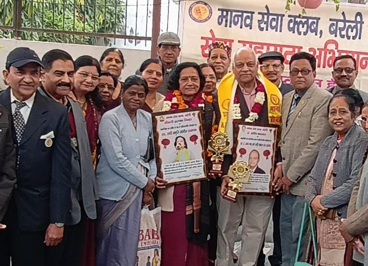 बरेली। मानव सेवा क्लब के तत्वावधान में रानी और अभय चंद्र स्मृति सम्मान समारोह में संगीतज्ञ अरुणा सिन्हा को तृतीय रानी स्मृति सम्मान और प्रदीप माधवार को अभय चन्द्र वर्मा स्मृति सेवा सम्मान दिया गया। सम्मान स्वरूप शाल, प्रशस्ति-पत्र और स्मृति चिन्ह क्लब के अध्यक्ष सुरेन्द्र बीनू सिन्हा, डा. अतुल वर्मा, इन्द्र देव त्रिवेदी, शिवा वर्मा, सत्येन्द्र कुमार सक्सेना ने प्रदान किया। रविवार को रामपुर गार्डन में क्लब के सेवा सहायता अभियान के अंतर्गत कम्बल, गर्म वस्त्र वितरण एवं भोजन वितरण का कार्यक्रम किया गया।