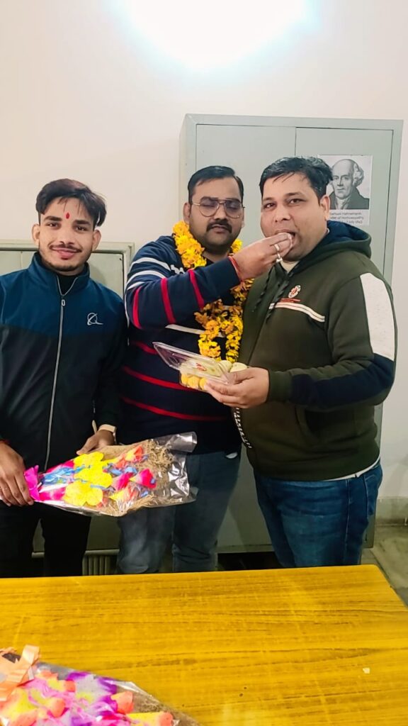आज जिला अस्पताल के होम्योपैथिक कछ में सौरभ शंखधार एवं समस्त स्टाफ ने फूल माला पहनकर और मिठाई खिलाकर निर्वाचित पदाधिकारी का स्वागत किया।